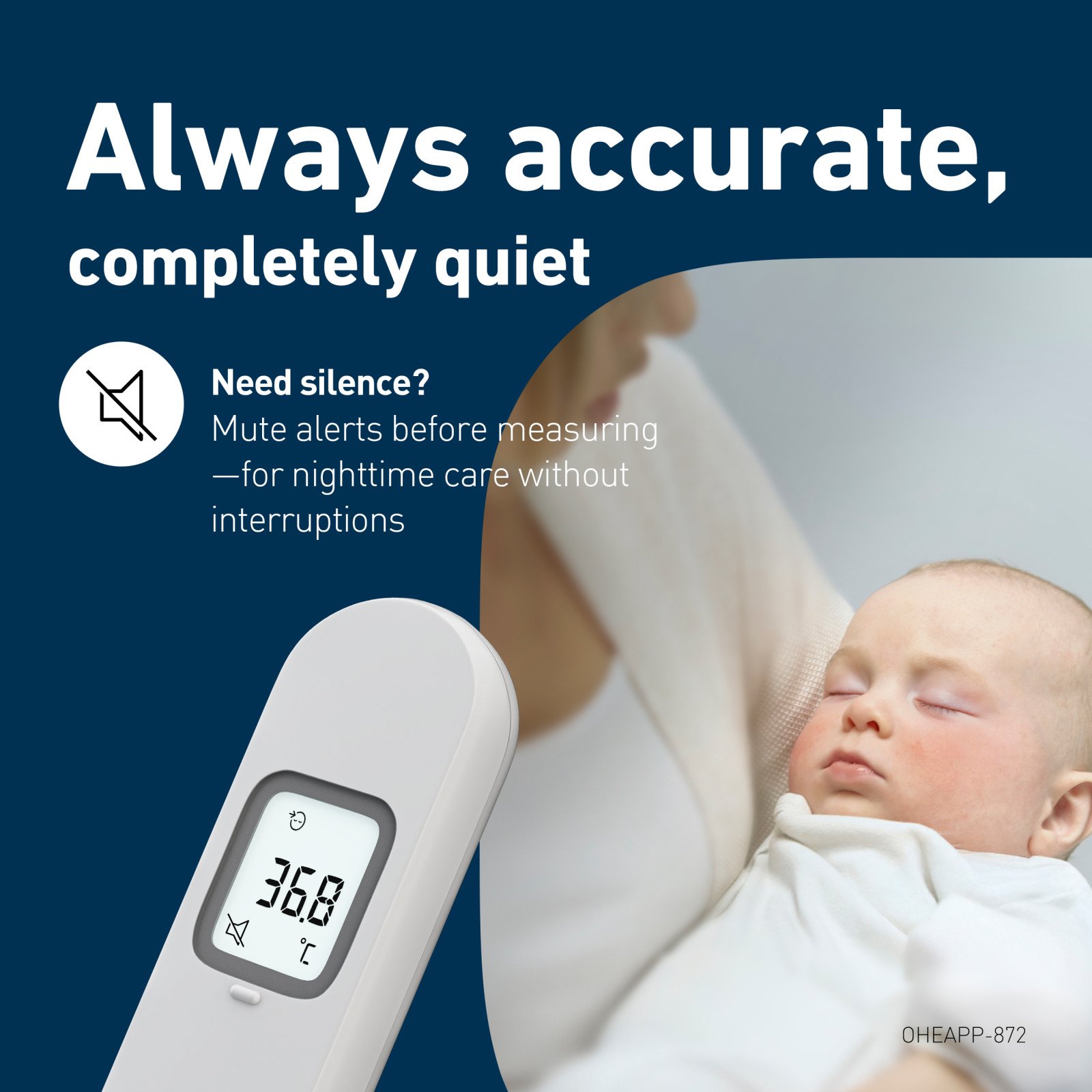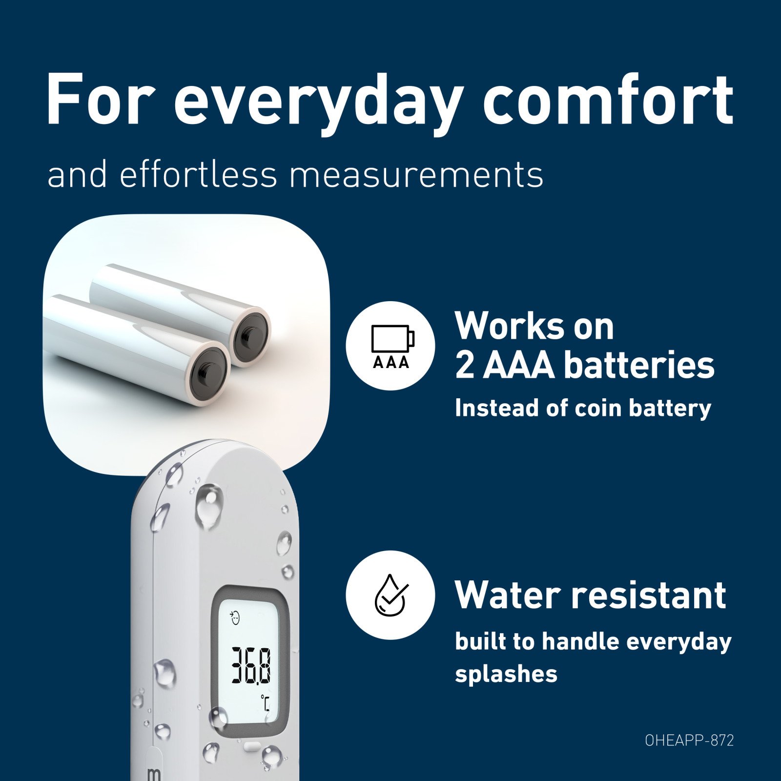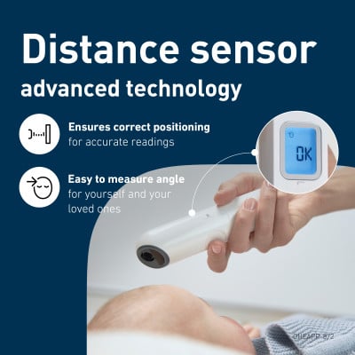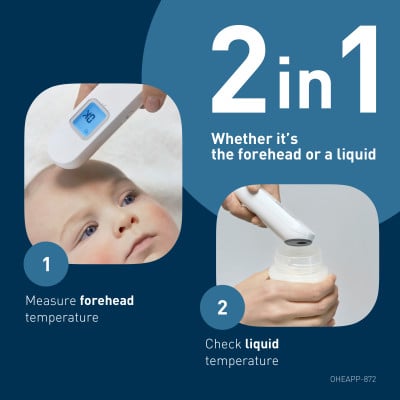 Családok gyors, érintésmentes hőmérséklet-ellenőrzésére tervezték, pontossággal és könnyedén. A fejlett távolságérzékelő technológiával gyors és pontos méréseket biztosít érintkezés nélkül. A távolságérzékelő biztosítja a helyes pozicionálást a megbízható leolvasás érdekében, és a következő mérés 1 másodpercen belül elvégezhető. A hőmérő csendes, könnyen kezelhető egy kézzel, és gyors használatra tervezték. képes a homlokhőmérséklet mérésére és a folyadékhőmérséklet ellenőrzésére. Az utolsó 30 hőmérsékletmérést elmenti. 2 db AAA elemmel működik.
